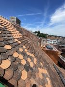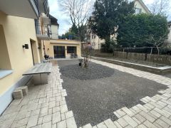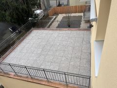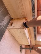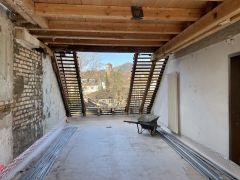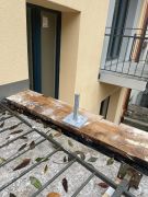 | Ersetzen der Betonrampe im 1. OG durch eine flachere: Tonnenschwer: | Die alten Dachziegel wieder gelegt und Fotovoltaik-Panels montiert: |